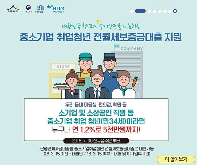 중소기업에 취업한 청년들에게 저리의 전월세보증금을 대출해주는 상품입니다.조건은 부부합산 연소득 5천만원 이하에 순자산가액이 3.61억원 이하의 무주택 세대주여야 합니다.무엇보다 중요한 것은 중소나 중견기업 재직자이거나 중소기업진흥공단, 신용보증기금 및 기술보증기금의 청년창업 지원을 받고 있는 자여야 합니다.만 19세 이상에서 만 34세 이하의 청년이어야 한다는 점도 기억하시길 바랍니다.