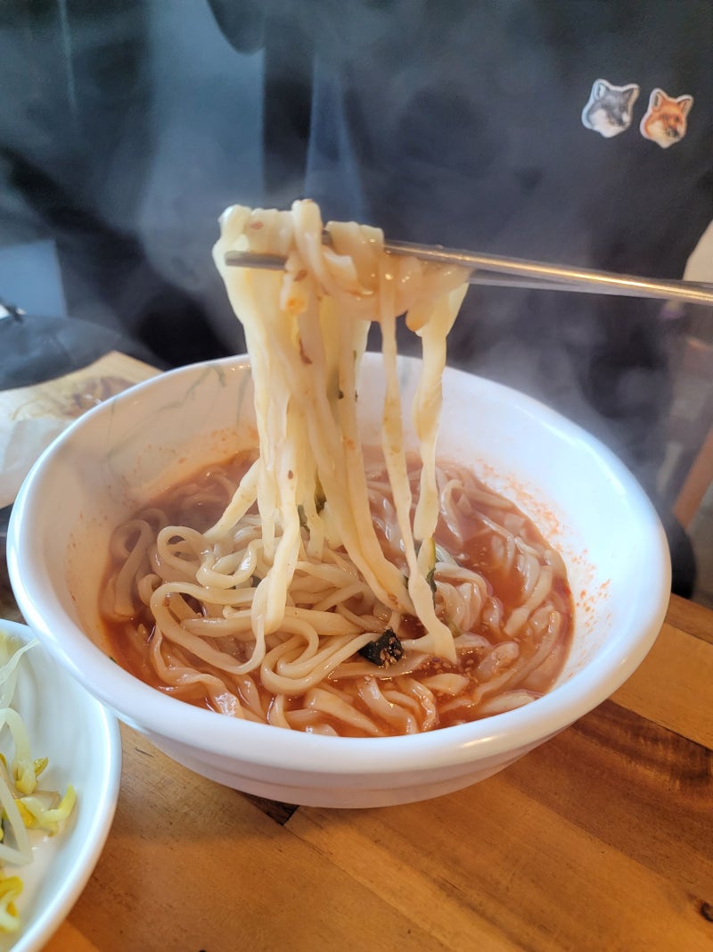 두 번째 김치는 은은한 빛이 나지 않지만 설탕이 많이 들어있어서 그런지 단맛이 난다. 칼국수가 나왔어요. 매콤 칼국수는 많이 맵지 않고 적당히 매콤하며 방가잎 3~4장을 얹어 먹었어요. 국물은 매콤하고 면은 쫄깃쫄깃해요. 칼국수 칼국수는 그냥 평범한 느낌이에요. 배고플 때 먹으면 맛이 없는 것은 무엇입니까? 맑은 공기 속에서 시골 같은 산을 바라보며 칼국수 먹는 걸 좋아해요.