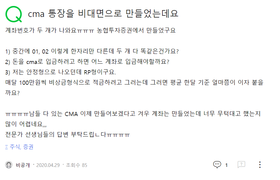 오늘의 주제 : 통장 만들기/용어집 – 주차 통장 – 증권사 CMA 통장